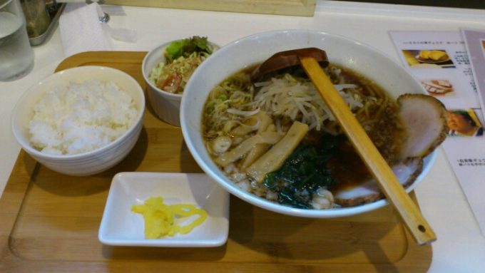 三重県津市 自家製て手もみ麺いたろう。 ラーメン定食670円。 ラーメンを並盛りに変更+100円。 ラーメン定食のにはラーメン(小)とライスとサラダが付きます。 なんでもこの辺りでは有名なラーメン屋だそうでテレビや雑種などのメディアにも多く登場して...