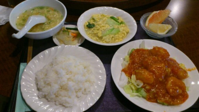 三重県津市。聡集苑でエビチリランチ。