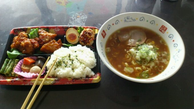十分にうまい。スーパーのお弁当にインスタントラーメン。