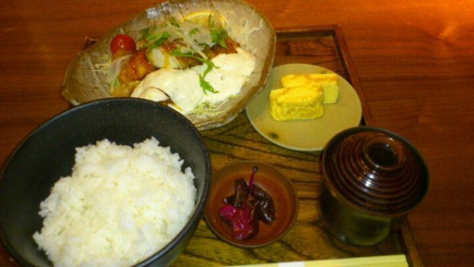 名古屋伏見囲い屋ランチ-チキン南蛮膳780円。ライス大盛り。安いし、上品でウマイ。さ、月末の午後も頑張ります。\(^-^)/ Android携帯からの投稿 -