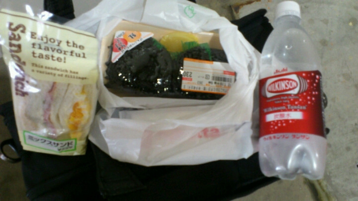 いつも日清のカップヌードルカレーを買うのだが今日は歩きながら外で食べる必要があっため為手に持てるものと言うことでおにぎりとサンドイッチ。