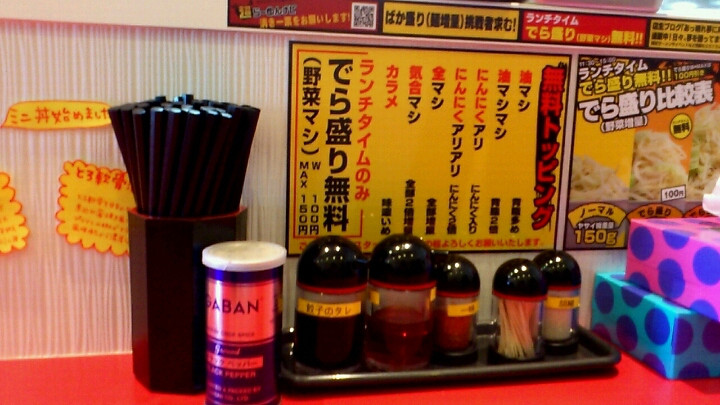 上の写真にあるように、選択可能なトッピングがカウンターに書かれている。