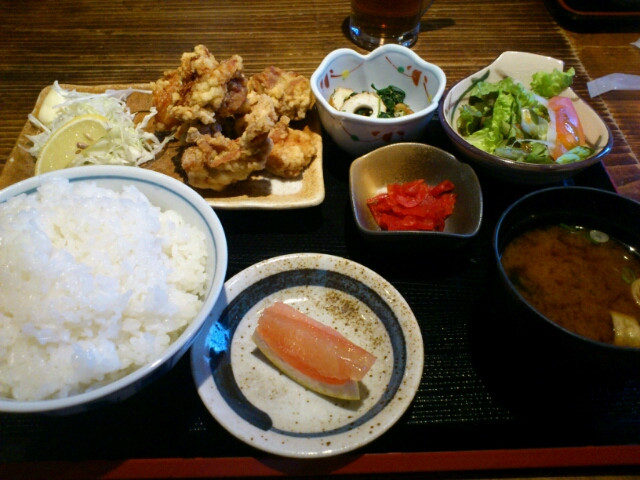 名古屋東口車道。もみじで唐揚げ定食。