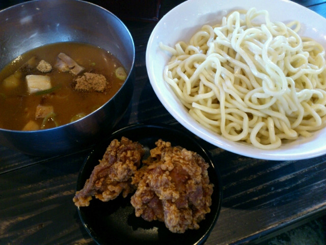 そして、大盛麺、唐揚げ、つけ麺用の出汁と出てきました。