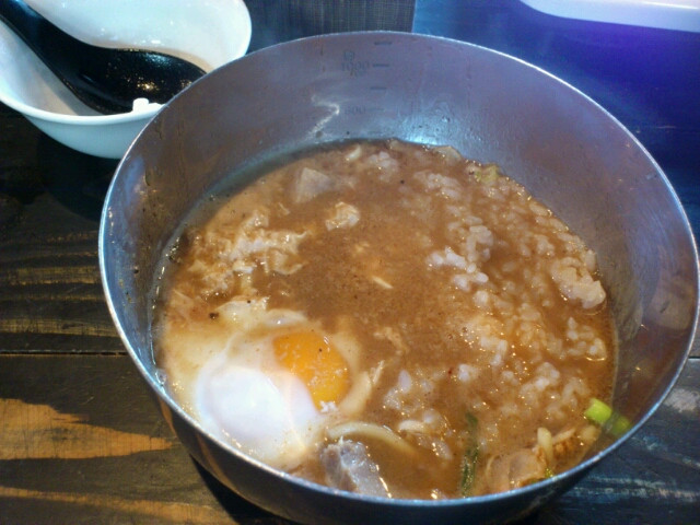 そこへご飯と卵をぶち込み雑炊にしてしめます。